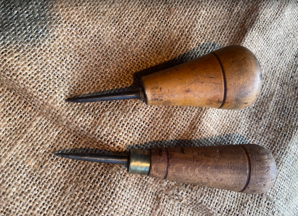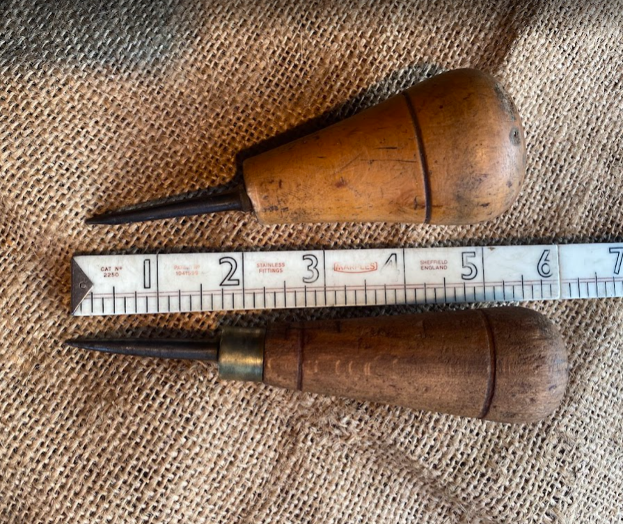 2 nice vintage leatherworker’s awls, one with a nicer boxwood handle. Signs of a life well lived but in good order and serviceable. Nice.