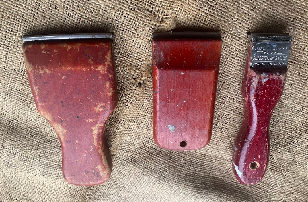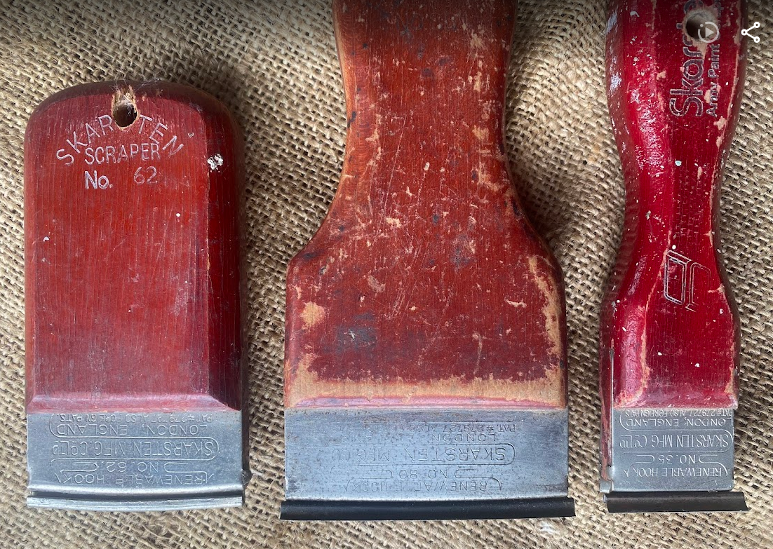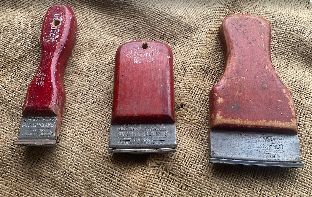 Set of three Skarsten scrapers — No. 80, No. 62 and No. 35. Used but sound and ready to go. These are regarded as some of the best scrapers ever made, and they’re getting harder to find as a set.