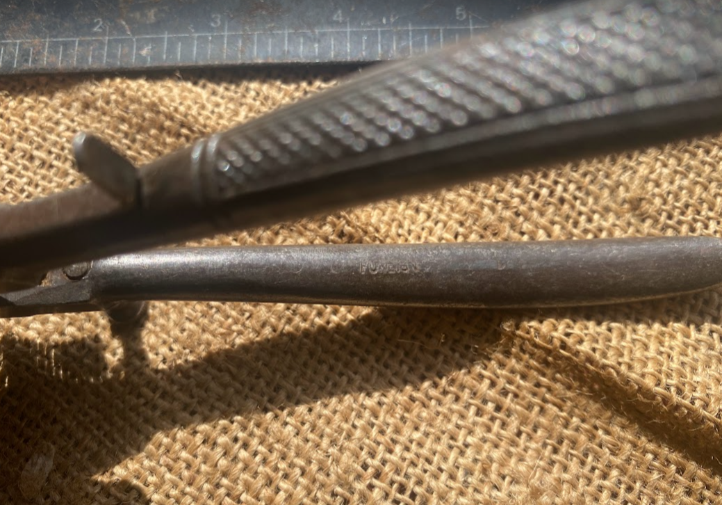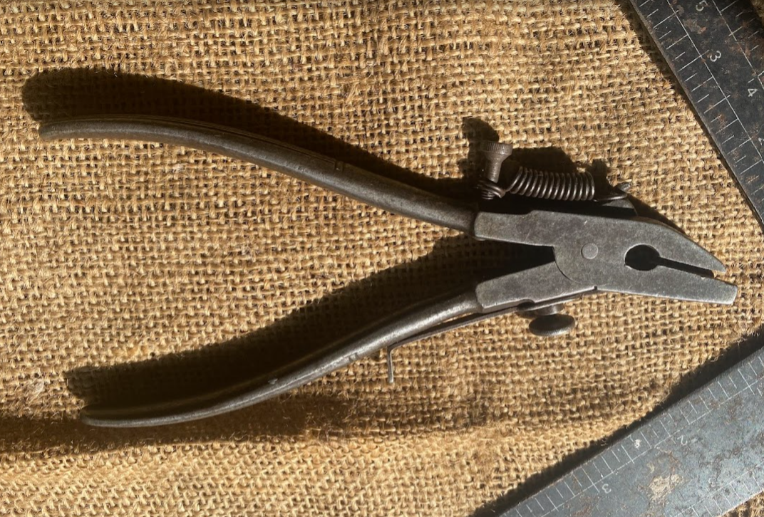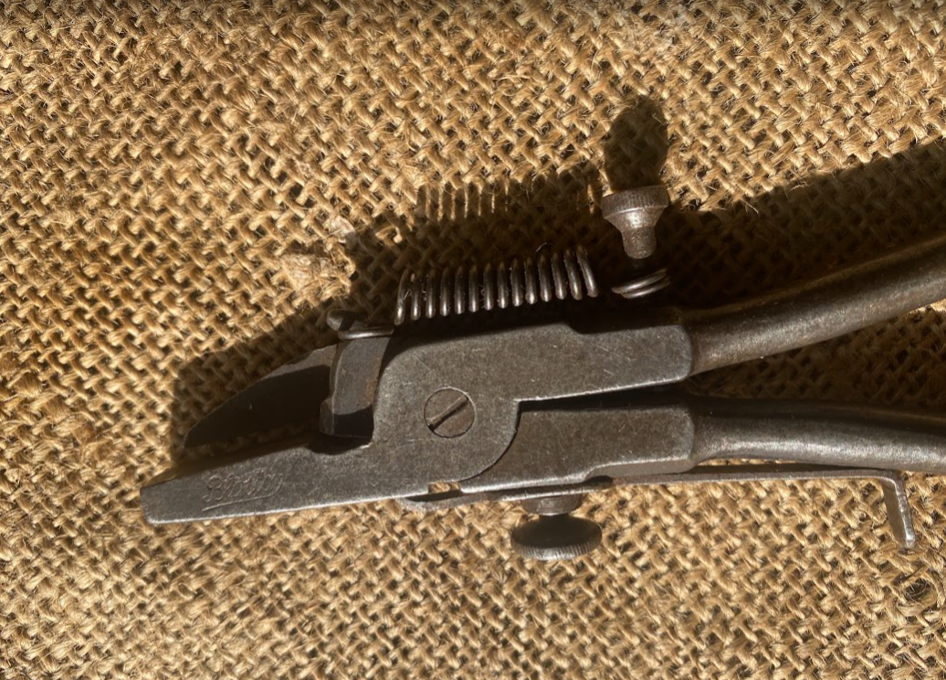 Nice pair of vintage saw setting pliers, Bloston, Germany. Marked nicely on nose and marked “Foreign” on the inside to one of the knurled handles. Move nicely and free, in good fettle. First pair I’ve seen.