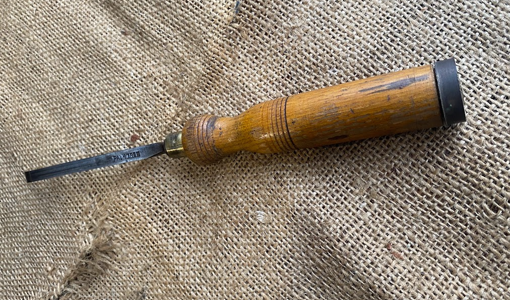 Solid Vintage Mawhood Palm Tree 1/4 Firmer Chisel. In decent order. A protective rubber washer has been added to handle at some time.