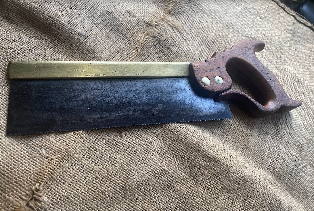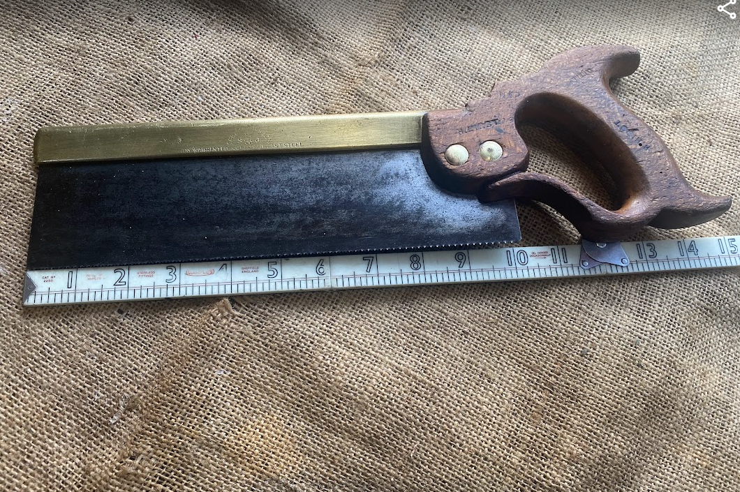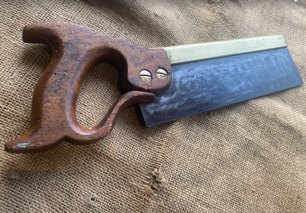 Nice little vintage Spear and Jackson Leapfrog 10″ Brass-Backed Tenon Saw c1930. In good order and straight. Will need a sharpen and looks to be about 14tpi. Great little saw.